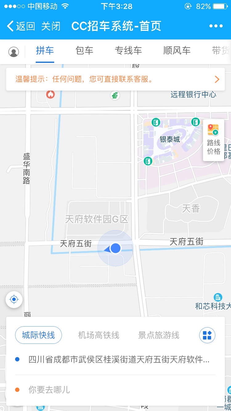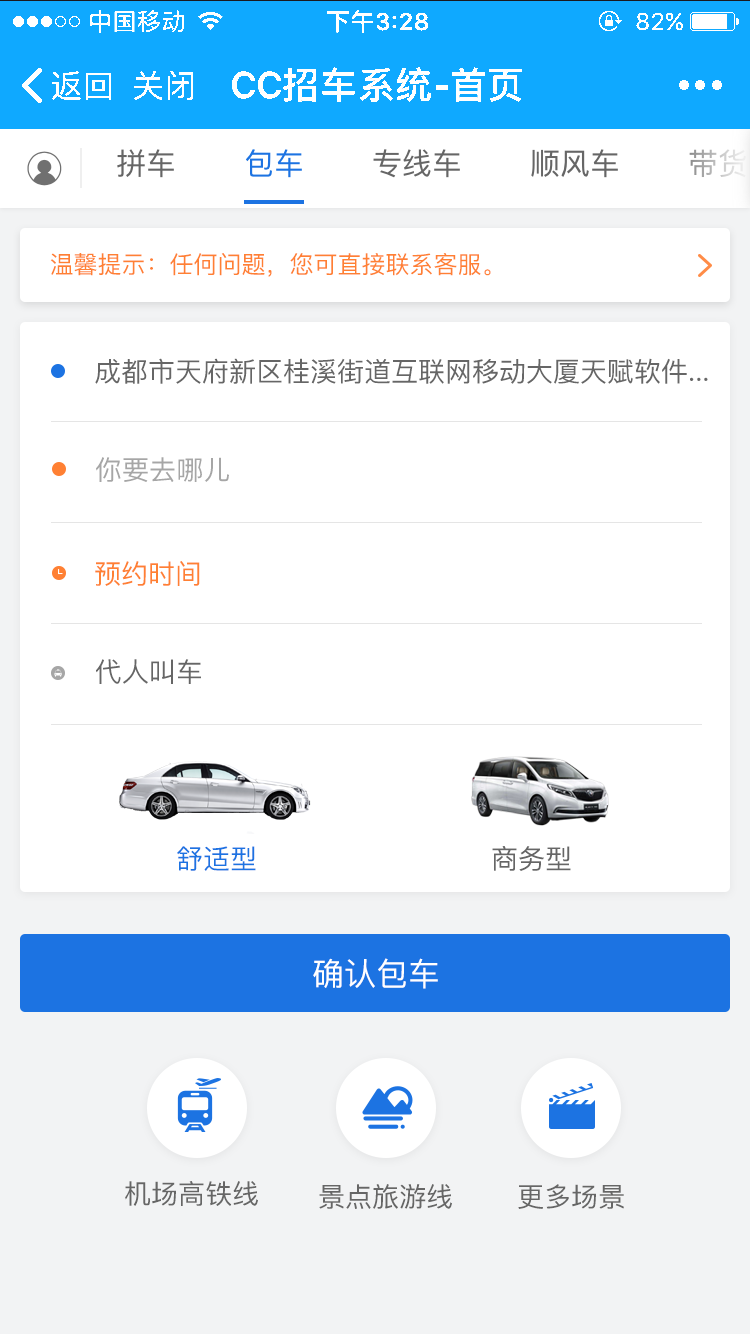 CC招车系统 是一款专为城际路线营运公司提供一套预约派单出行管理软件。提供:定制客运系统、客运班线系统、网约车系统(专线拼车/快车/出租车/顺风车)、城际包车系统、小件带货系统、代办代购系统、租车系统、代驾系统,提供网约车牌照及定制客运备案办理服务。